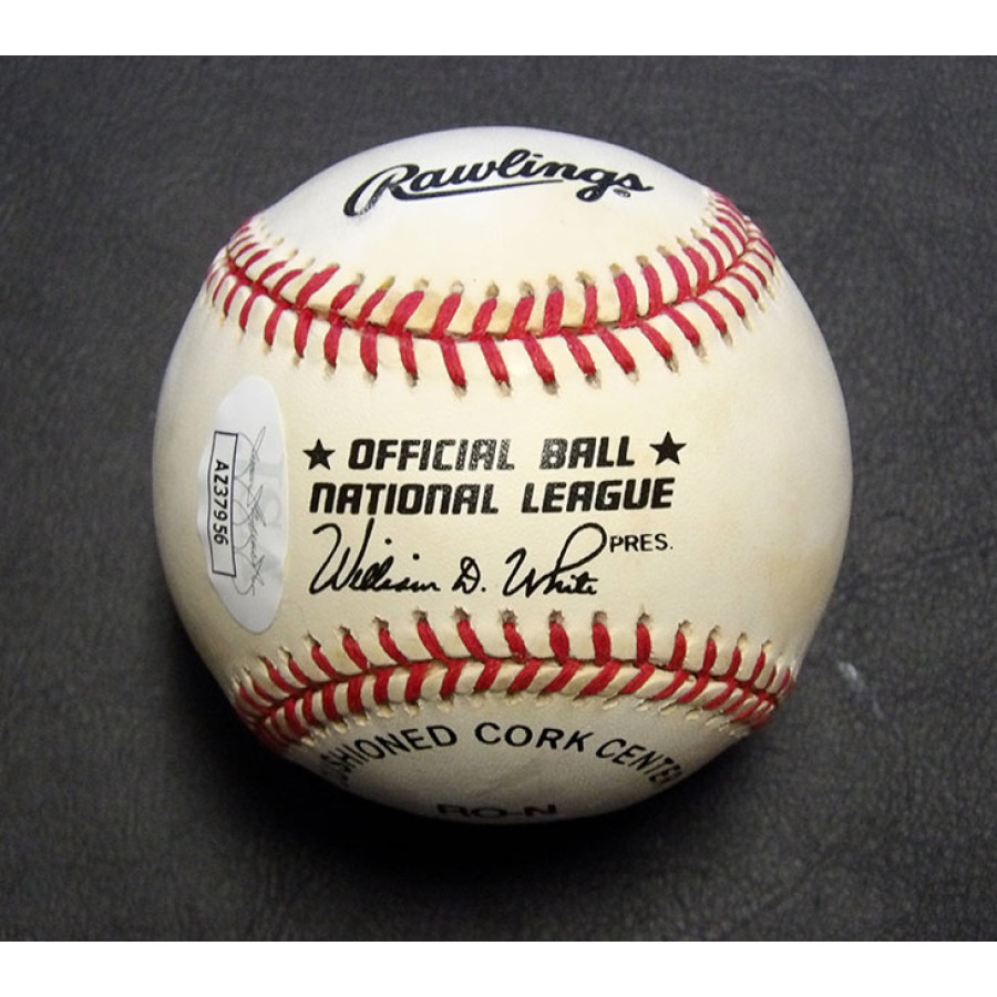 Signed Cliff Floyd Rawlings official National League baseball in blue pen on the sweet spot. The ball has toning/spotting to it. This item has been certified by James Spence Authentication (JSA) with sticker affixed to item and matching card.