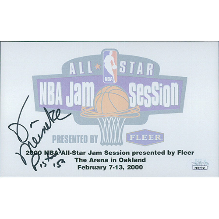 Signed Don Meineke 5x8 2000 NBA All-Star Jam Session Fleer Autograph Card in black sharpie with "Pistons" inscription. This autograph has been certified by James Spence Authentication (JSA) with sticker affixed to item and matching card.
