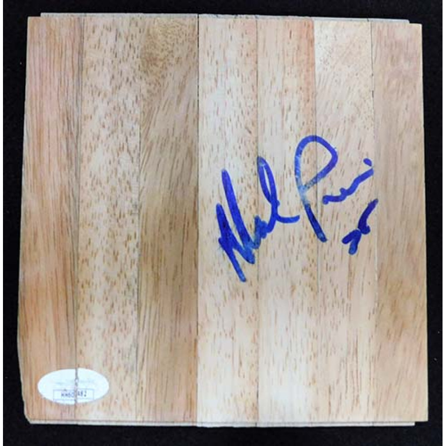 Signed Mark Price 6x6 floorboard in blue sharpie. The signature is smudged. This item is certified by James Spence Authentication (JSA) with sticker affixed to item and matching card.