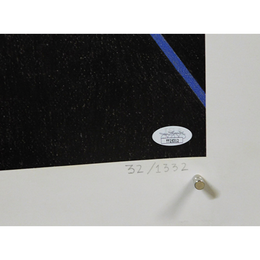 Signed Shaquille O'Neal Orlando Magic 27.5x30.5 Lithograph in pencil. This item is numbered 32 of 1332. There are some minor creases and scuffing around the boarder. This item has been certified by James Spence Authentication (JSA) with sticker affixed to item and matching card.