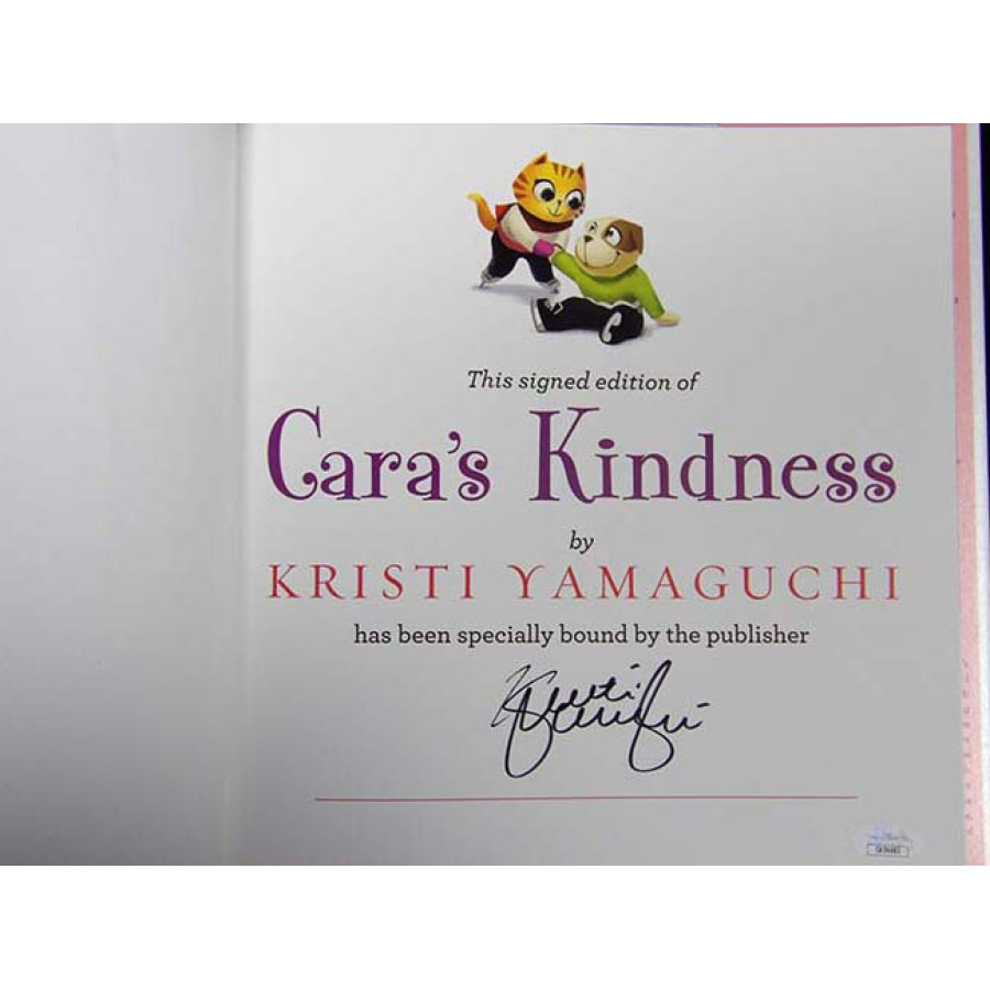 Signed Kristi Yamaguchi Cara's Kindness first edition hardcover book in black ink on the inside cover page. This item is certified by James Spence Authentication (JSA) with sticker affixed to item and matching card.