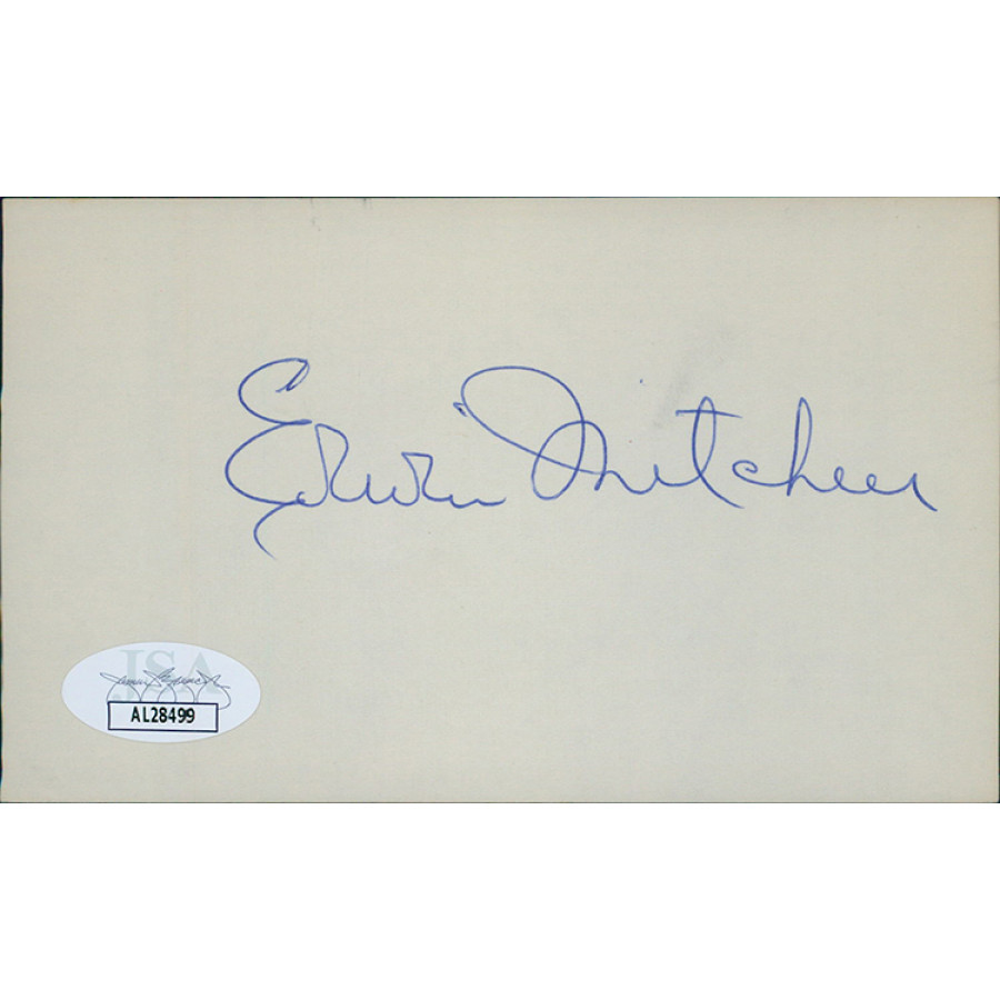 Signed Harlan Erwin Mitchell 3x5 index card in blue ink. This item has been certified by James Spence Authentication (JSA) with sticker affixed to item and matching card.