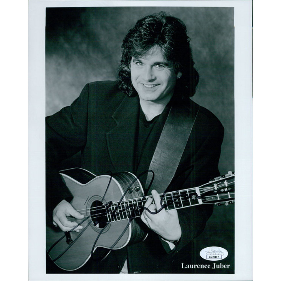 Signed Laurence Juber 8x10 glossy finish promo photo in black sharpie. The photo has some light kinks and scratches. This item has been certified by James Spence Authentication (JSA) with sticker affixed to item and matching card.