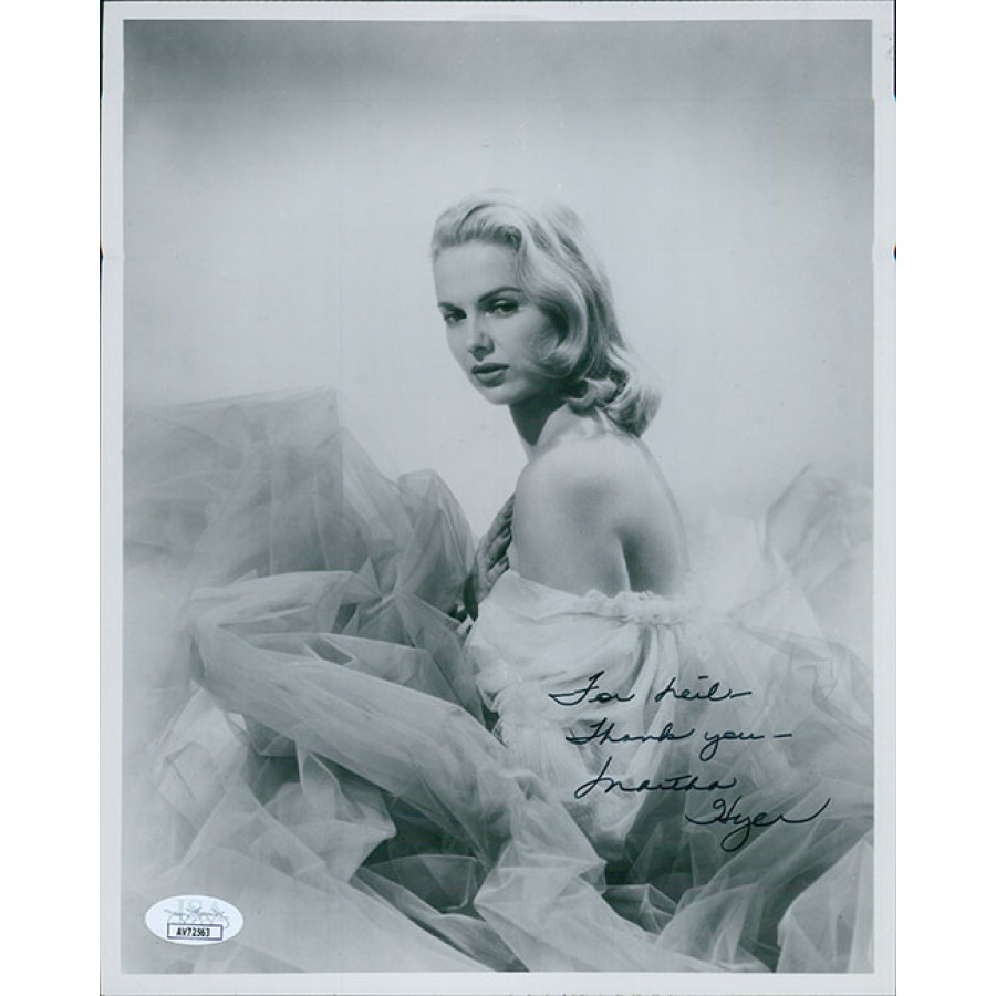 Signed Martha Hyer 8x10 matte finish photo in black ink personalized "For Neil". This item has been certified by James Spence Authentication (JSA) with sticker affixed to item and matching card.