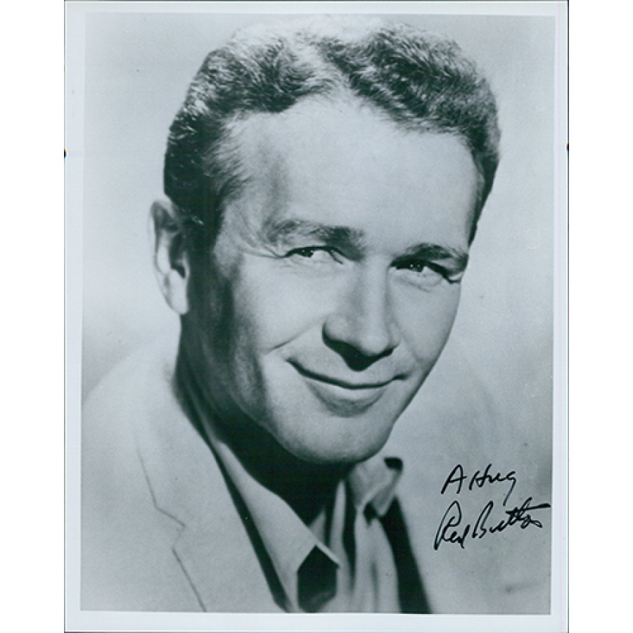 Signed Red Buttons 8x10 glossy photo in black ink. This item has been certified by James Spence Authentication (JSA) with sticker affixed to item and matching card.