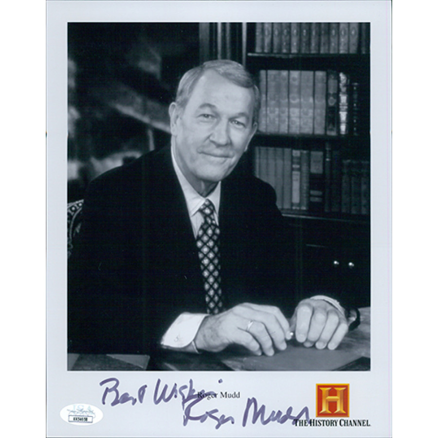 Signed Roger Mudd 8x10 glossy finish promo photo in black sharpie. This item is certified by James Spence Authentication (JSA) with sticker affixed to item and matching card.