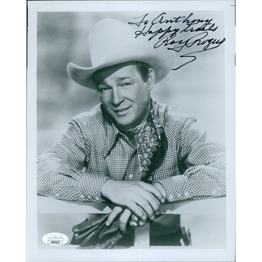 Signed Roy Rogers 8x10 glossy finish photo in black sharpie personalized "To Anthony". This item has been authenticated by James Spence Authentication (JSA) with sticker affixed to item and matching card.