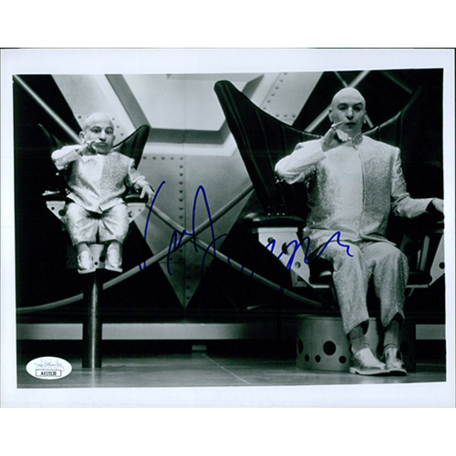 Signed Vern Troyer Austin Powers: The Spy Who Shagged Me 8x10 glossy finish photo in blue sharpie. The photo has a few kinks to it. This item has been certified by James Spence Authentication (JSA) with sticker affixed to item and matching card.