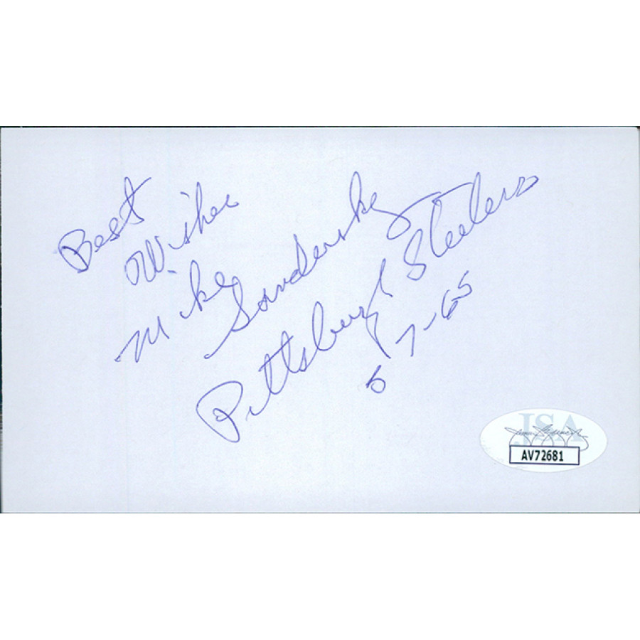 Mike Sandusky Pittsburgh Steelers Signed 3x5 Index Card JSA Authenticated
