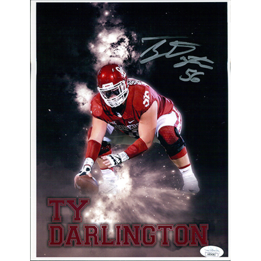 Signed Ty Darlington Oklahoma Sooners 8.5x11 cardstock photo in silver sharpie. This item is certified by James Spence Authentication (JSA) with sticker affixed to item and matching card.