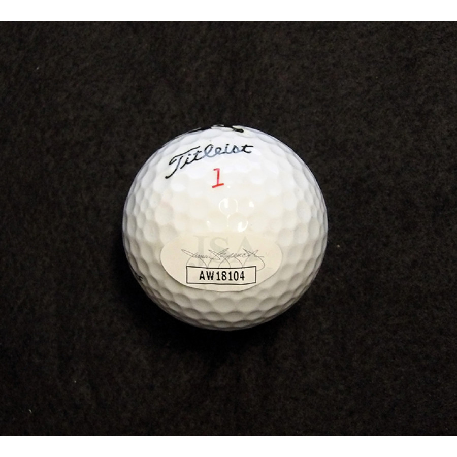 Signed Gary Player Titleist golf ball in black sharpie. There is some yellowing around the signature. This item has been certified by James Spence Authentication (JSA) with sticker on item and matching card.