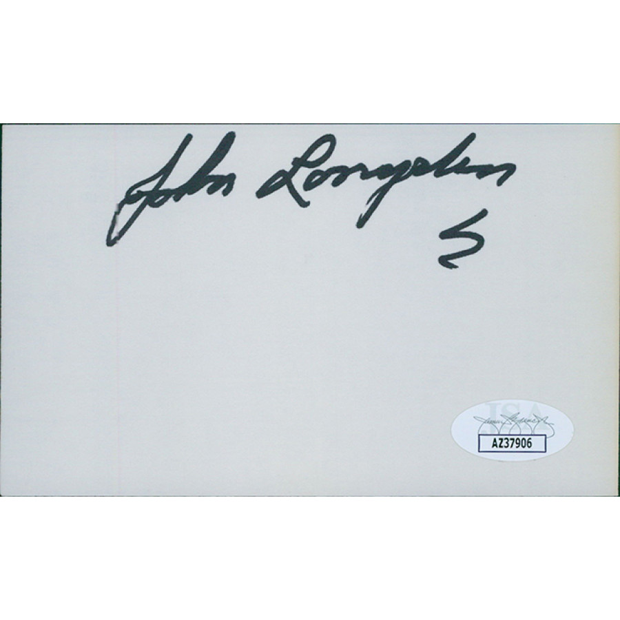 Signed John Longden 3x5 index card in black ink. This item has been certified by James Spence Authentication (JSA) with sticker affixed to item and matching card.