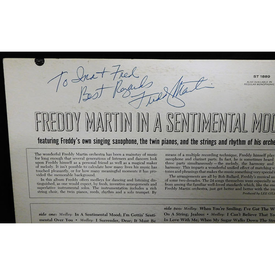 Freddy Martin In A Sentimental Mood Signed LP Album JSA Authenticated