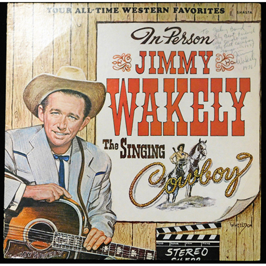 Signed Jimmy Wakely The Singing Cowboy Record Album on the cover in black pen personalized "To Johnny Bord" and dated 1976. The album does show use. The autograph has been certified by James Spence Authentication (JSA) with sticker affixed to item and matching card.