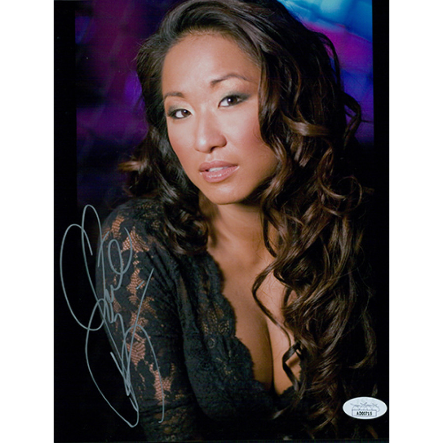 Signed Gail Kim 8x10 glossy finish photo in silver sharpie. This item has been certified by James Spence Authentication (JSA) with sticker affixed to item and matching card.