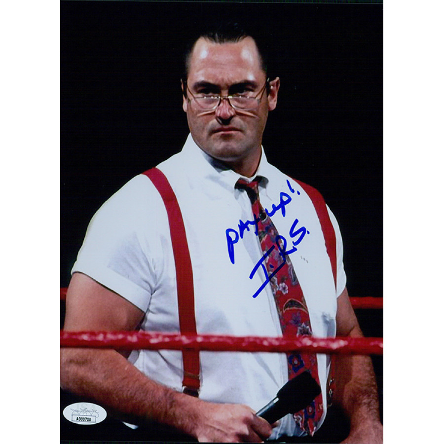 Signed IRS Mike Rotunda 8x10 glossy finish photo in blue sharpie. This item has been certified by James Spence Authentication (JSA) with sticker affixed to item and matching card.