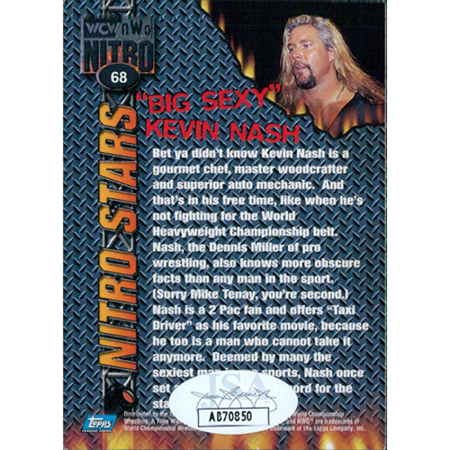 Signed Kevin Nash WCW NWO 1999 Topps Nitro Wrestling Card #68 in blue sharpie. This item has been certified by James Spence Authentication (JSA) with sticker affixed to item and matching card.