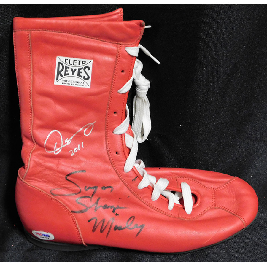 Sugar Shane Mosley Oscar de la Hoya signed Reyes Boxing Shoe Boot PSA Authentic
