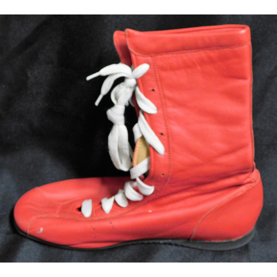 Signed Sugar Shane Mosley and Oscar de la Hoya Reyes red boxing shoe in silver and black sharpie. This item has been certified by Professional Sports Authenticator (PSA) with sticker affixed to item and matching card.